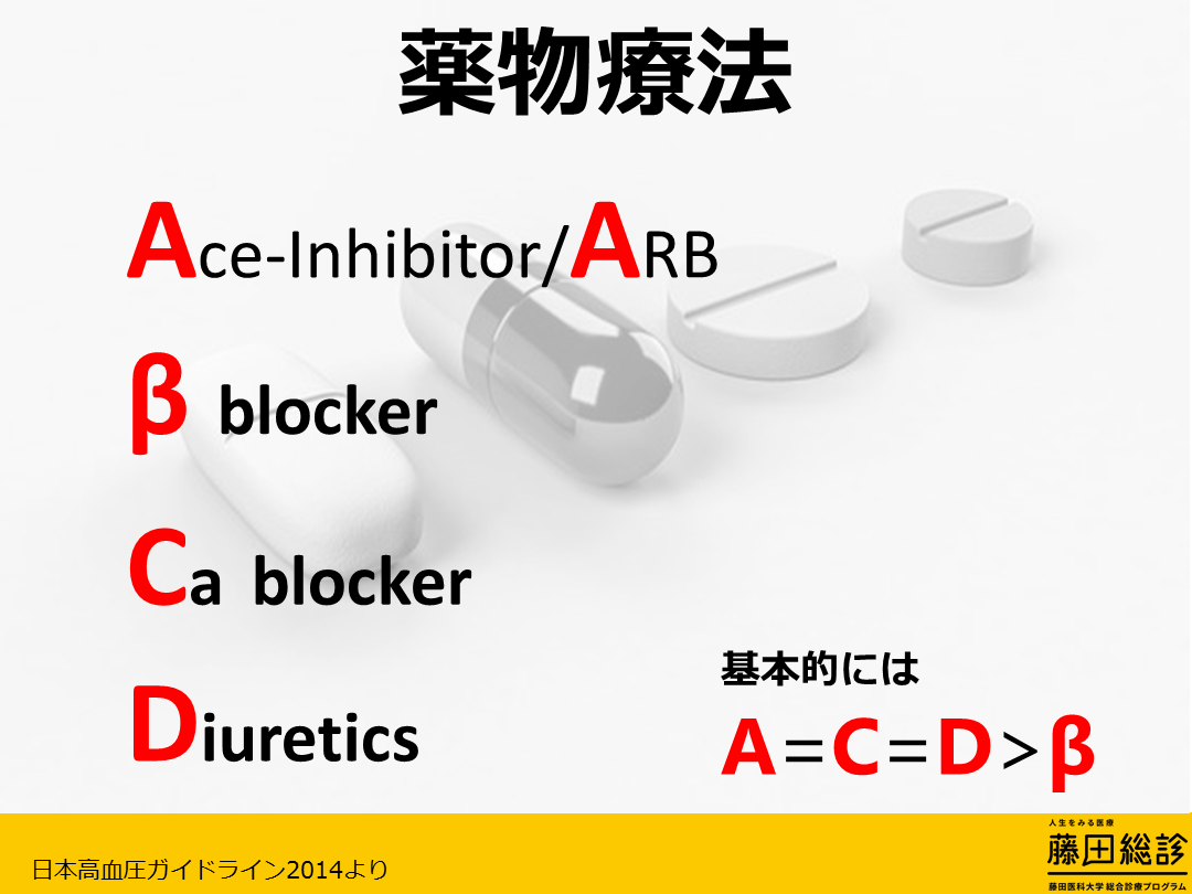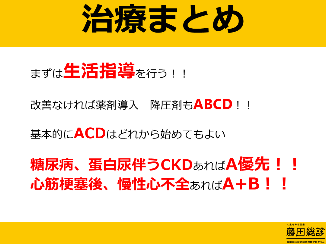 #33. 治療まとめ まずは生活指導を行う!! 改善なければ薬剤導入 降圧剤もABCD!!
