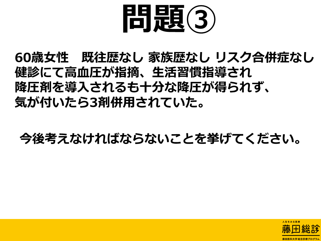 #43. 問題③ 60歳女性 既往歴なし 家族歴なし リスク合併症なし