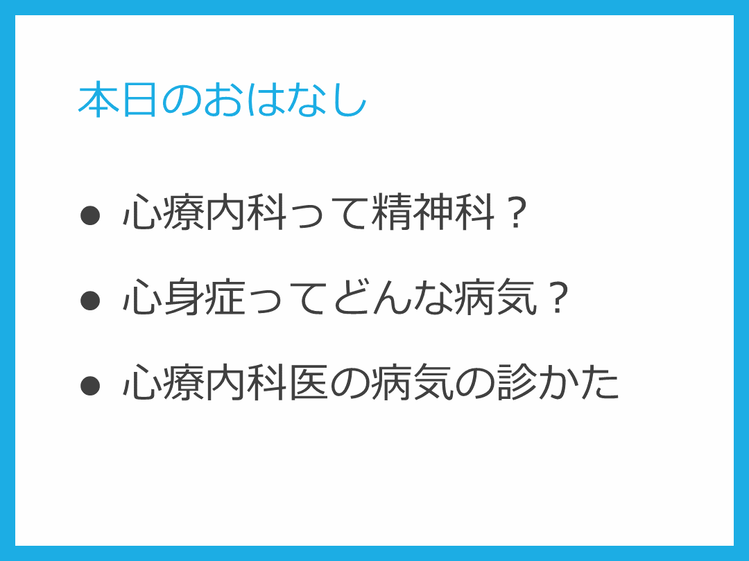 #2. 本日のおはなし 心療内科って精神科?
