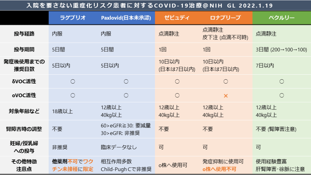 ラゲブリオ投与が望ましい 重症化因子あり ゼビュディ投与可 ゼビュディ投与不可 入院不要または不可 要入院 ワクチン未接種で