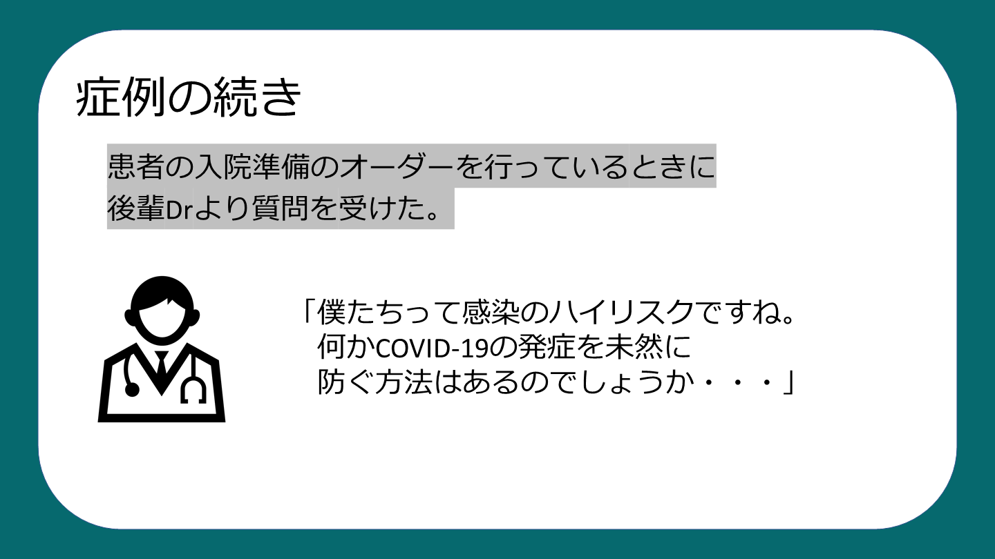 「僕たちって感染のハイリスクですね。 何かCOVID-19の発症を未然に 防ぐ方法はあるのでしょうか・・・」