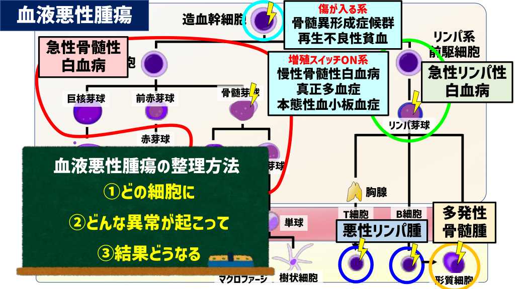 何やら複雑でややこしそうに見えますが、この動画を見てもらえれば血液が作られるプロセス。どこでどうやって成長していくのか、そして成長した細胞はどこへ行くのか、これを一通り学ぶことができると思います。