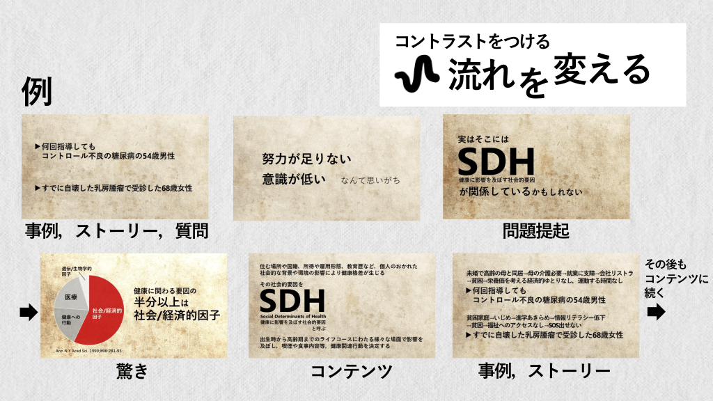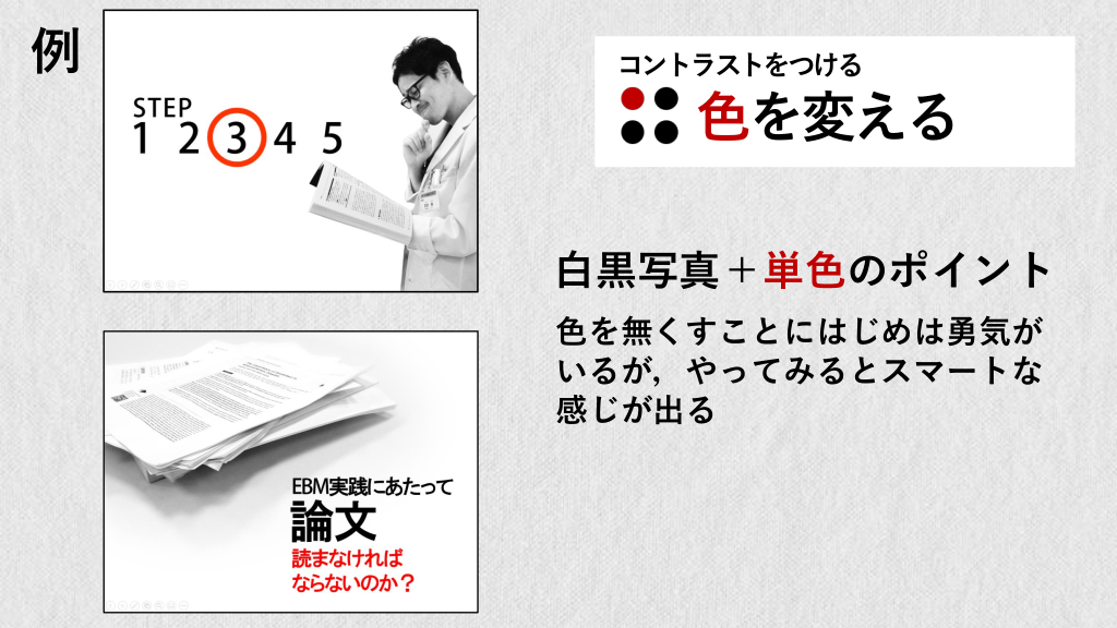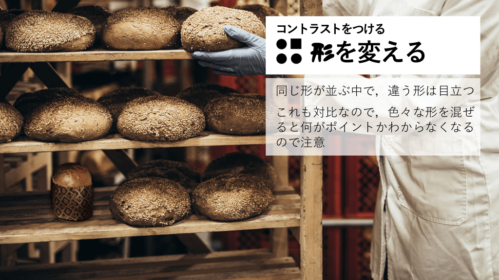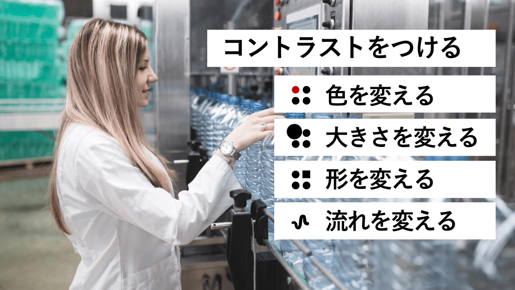 #4. コントラストをつける 色を変える 大きさを変える 形を変える 流れを変える