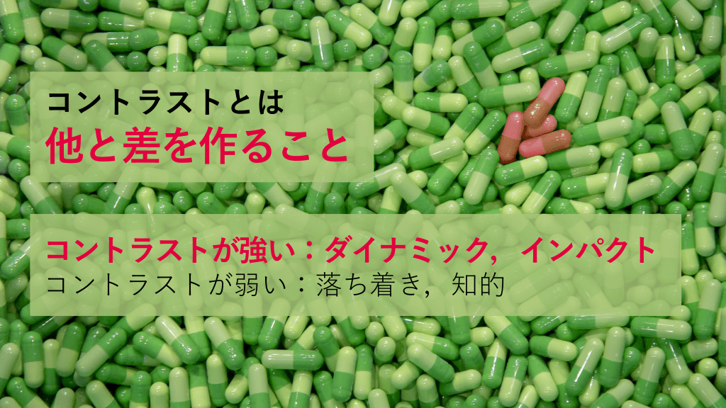 #3. コントラストとは 他と差を作ること コントラストが強い:ダイナミック,インパクト コントラストが弱い:落ち着き,知的