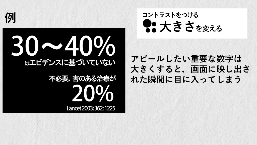 #8. コントラストをつける 大きさを変える 大きなものと小さなものの対比 全部大きくすると対比にならず, 重要な部分が目立たないので注意