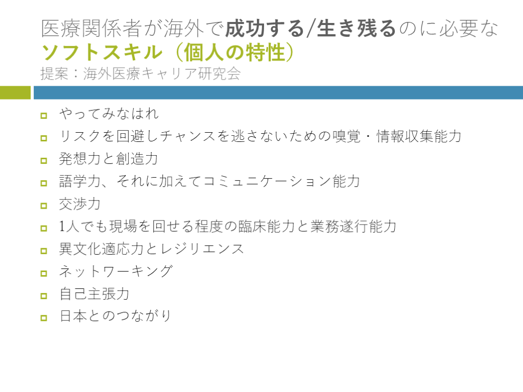 #6. 医療関係者が海外で成功する/生き残るのに必要なソフトスキル(個人の特性)提案:海外医療キャリア研究会 やってみなはれ