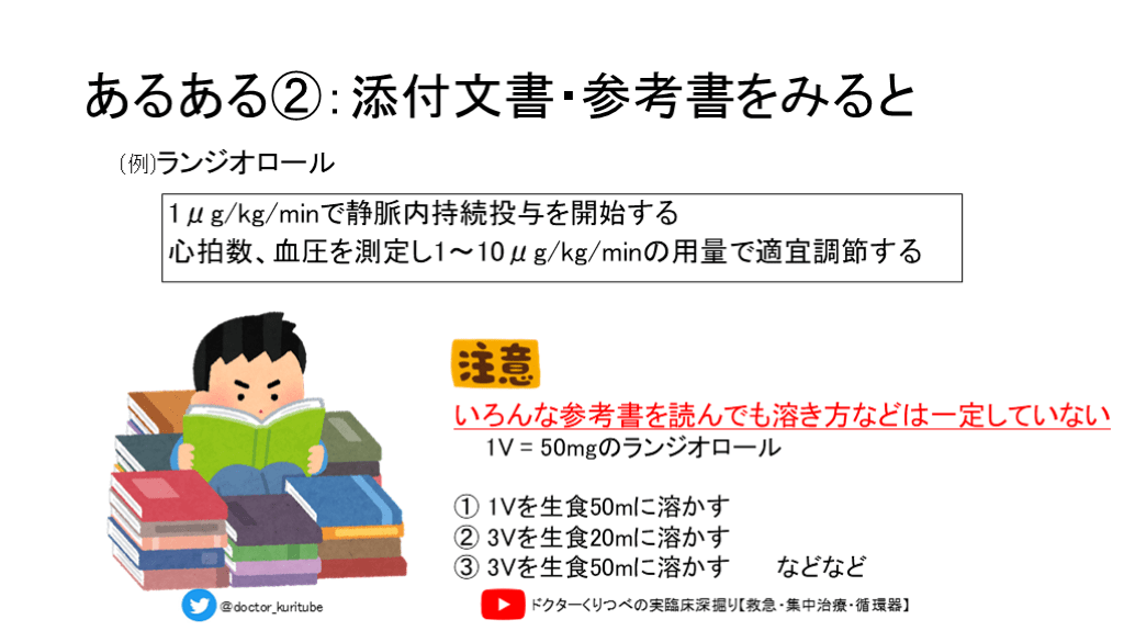 #3. あるある②:添付文書・参考書をみると 1μg/kg/minで静脈内持続投与を開始する