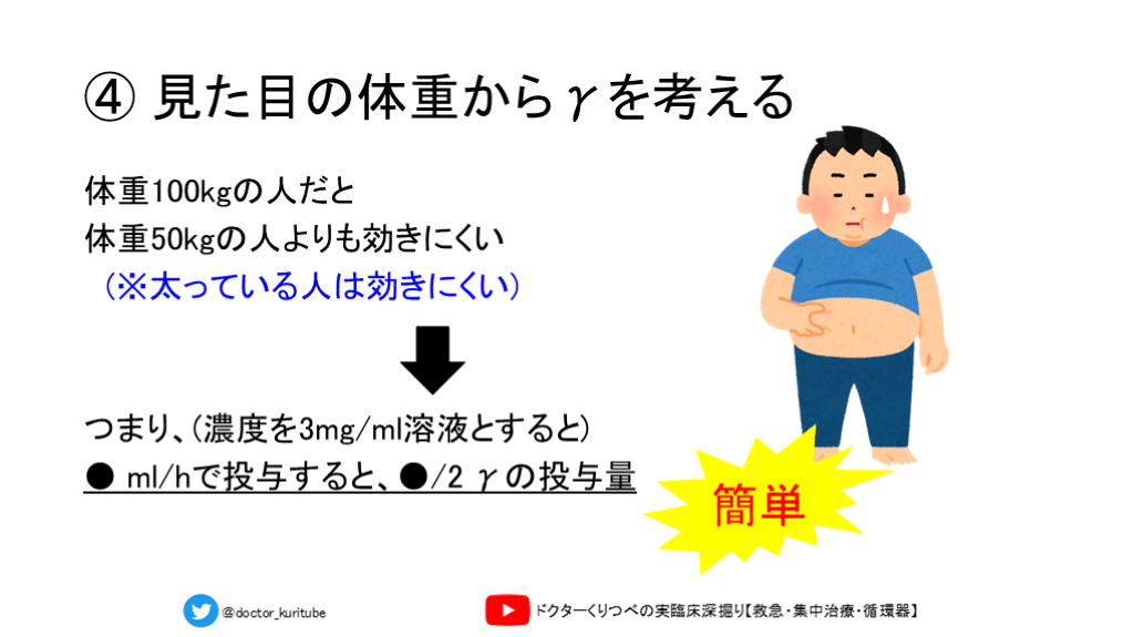 #12. ④ 見た目の体重からγを考える 体重100kgの人だと