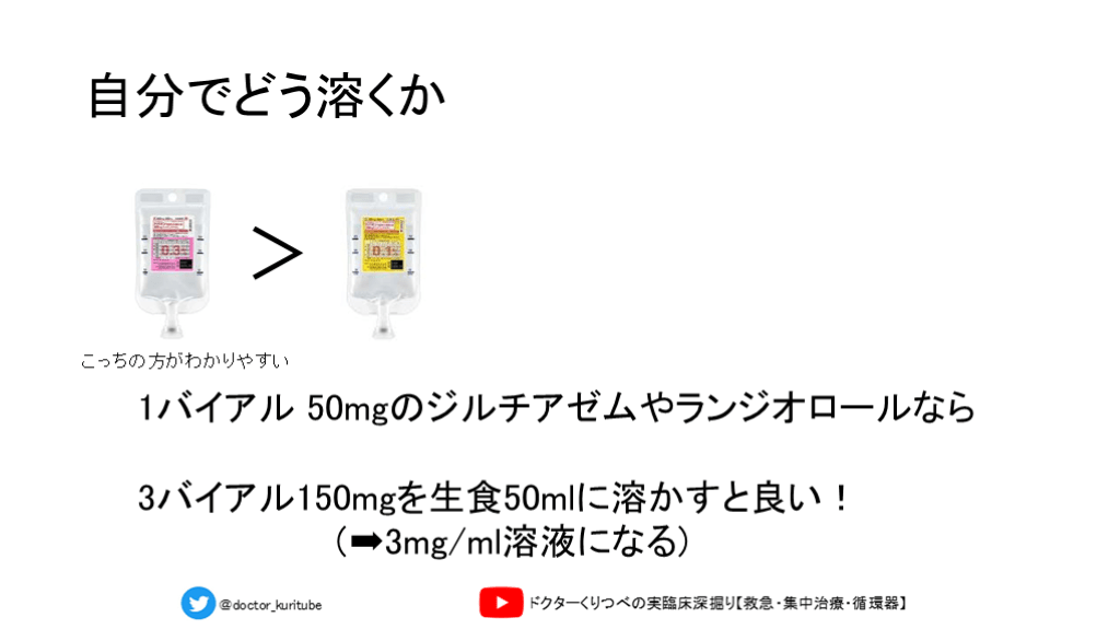 #15. 自分でどう溶くか 1バイアル 50mgのジルチアゼムやランジオロールなら