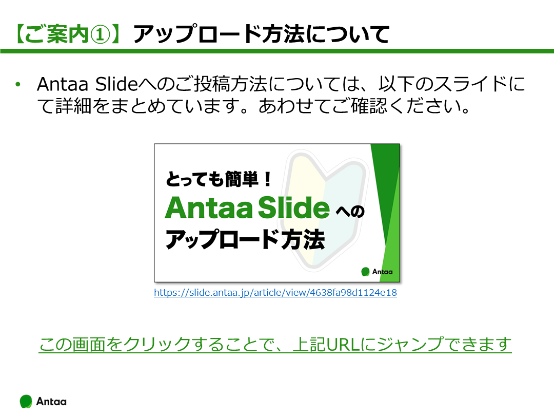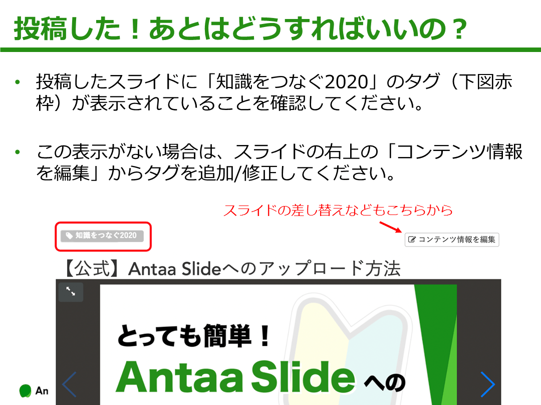 → コンテスト終了後も、そのままAntaa Slideに掲載されます。投稿済スライドは、URLを変えることなくマイページからいつでも差し替え可能です。