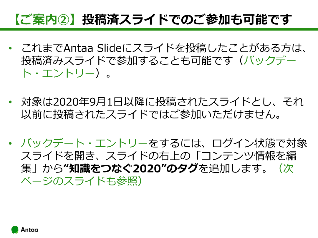 → 投稿済スライドでもエントリー可能です(バックデート・エントリー)。詳細はこのスライドをご覧ください。