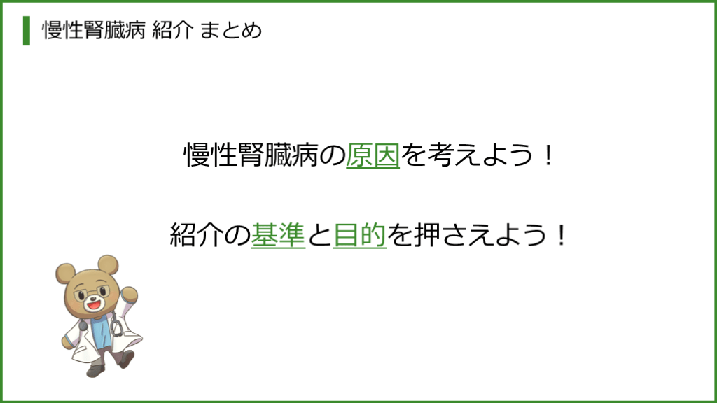 #19. 慢性腎臓病 紹介 まとめ 慢性腎臓病の原因を考えよう! 紹介の基準と目的を押さえよう!