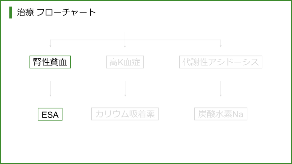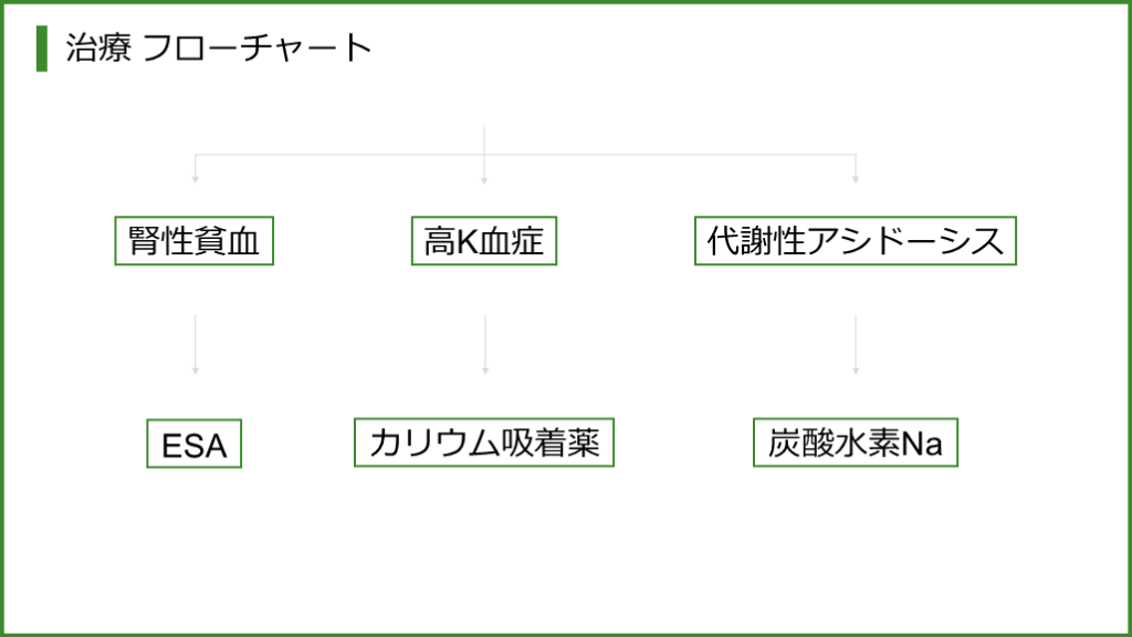 #32. 治療 フローチャート 腎性貧血 ESA 高K血症 カリウム吸着薬 代謝性アシドーシス 炭酸水素Na