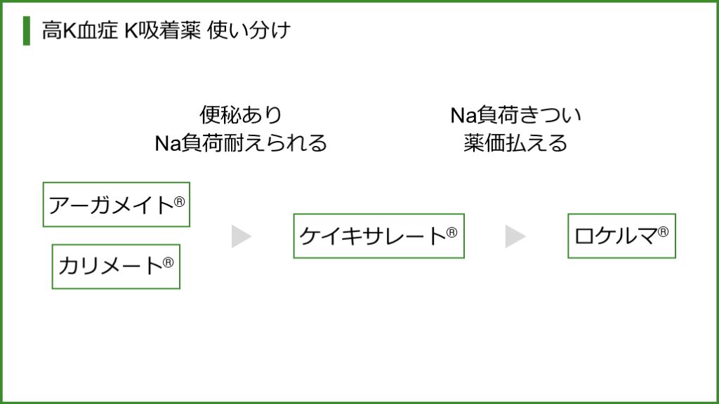 #39. 高K血症 K吸着薬 使い分け 便秘あり