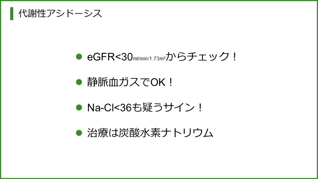 #41. 代謝性アシドーシス eGFR<30ml/min/1.73m2からチェック!