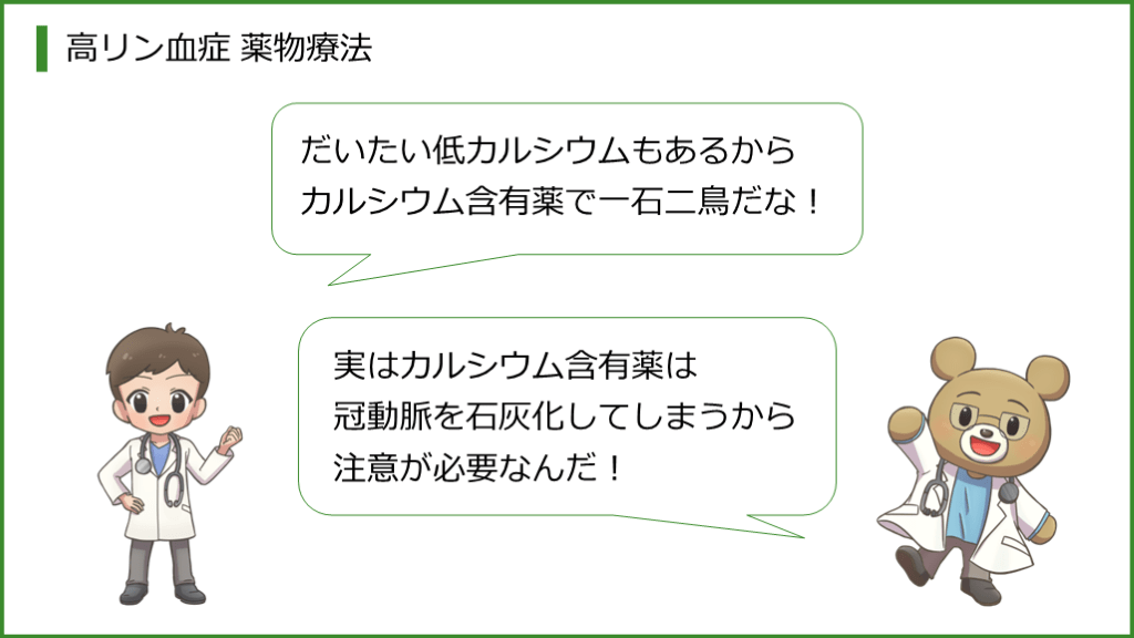 #56. 高リン血症 薬物療法 だいたい低カルシウムもあるから