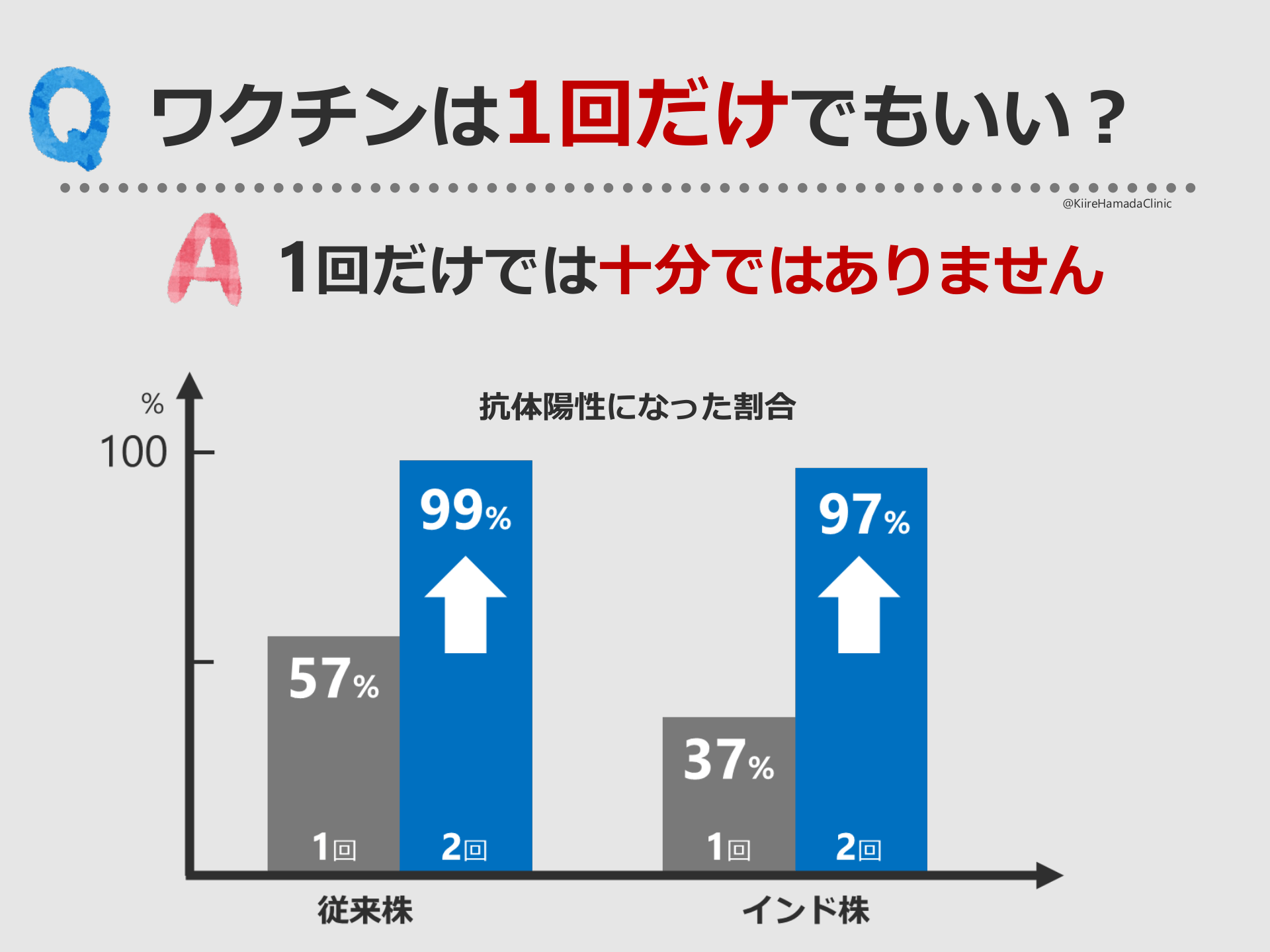 #57. ワクチンは1回だけでもいい? @KiireHamadaClinic 1回だけでは十分ではありません 抗体陽性になった割合