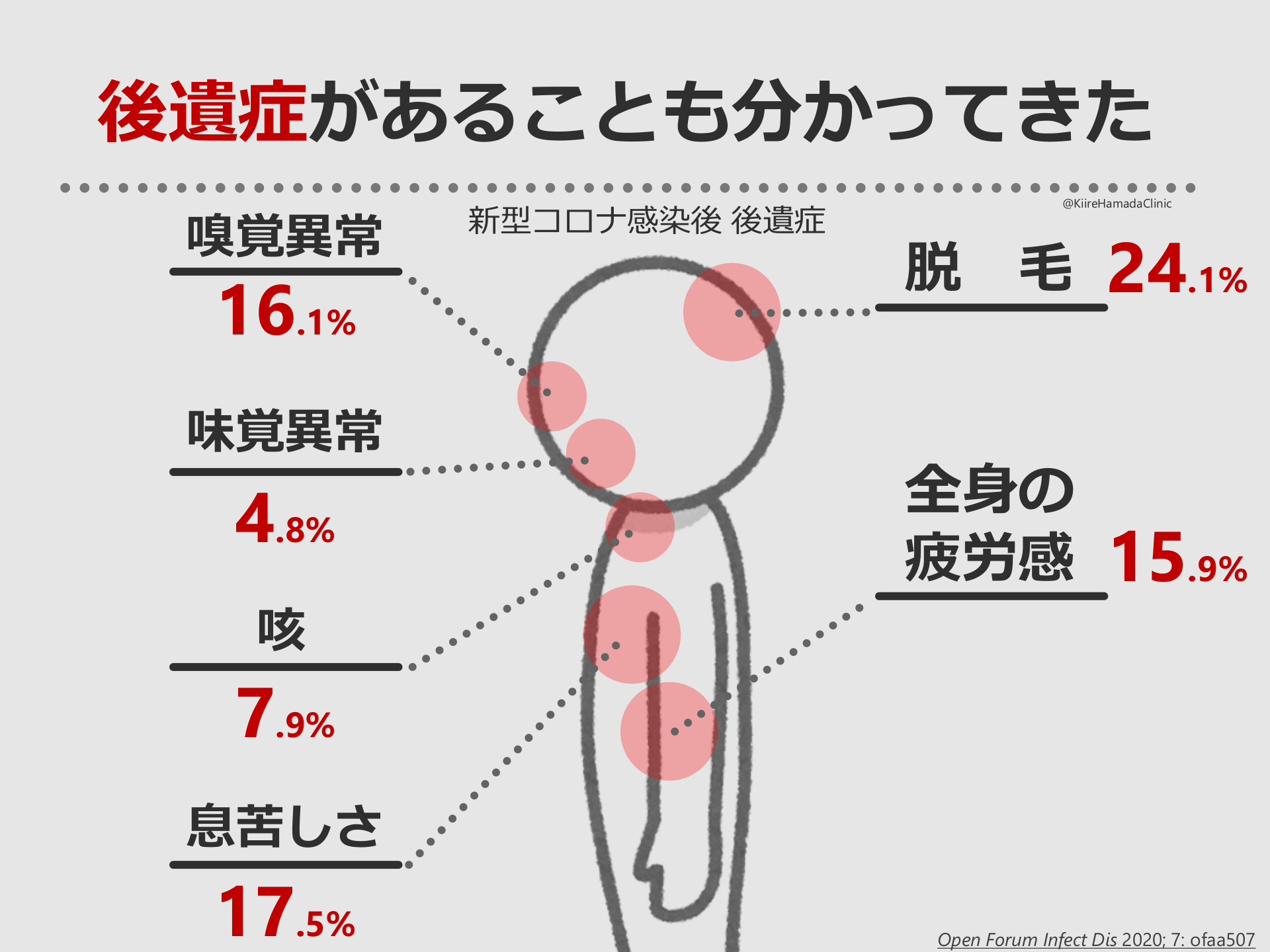 #10. 後遺症があることも分かってきた 嗅覚異常 16.1% 新型コロナ感染後 後遺症 @KiireHamadaClinic 脱 毛 24.1% 自分がうつらないように、 味覚異常 全身の 4.8% 疲労感 15.9% 誰かにうつさないように。 咳 7.9% 息苦しさ 17.5% Open Forum Infect Dis 2020; 7: ofaa507