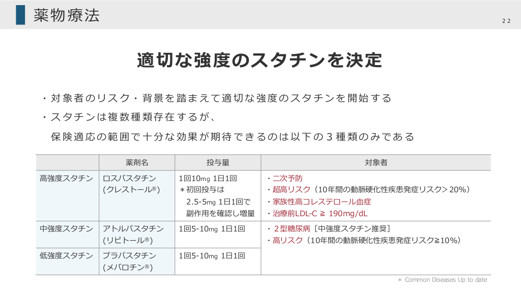薬物療法の適用とスタチンの使用