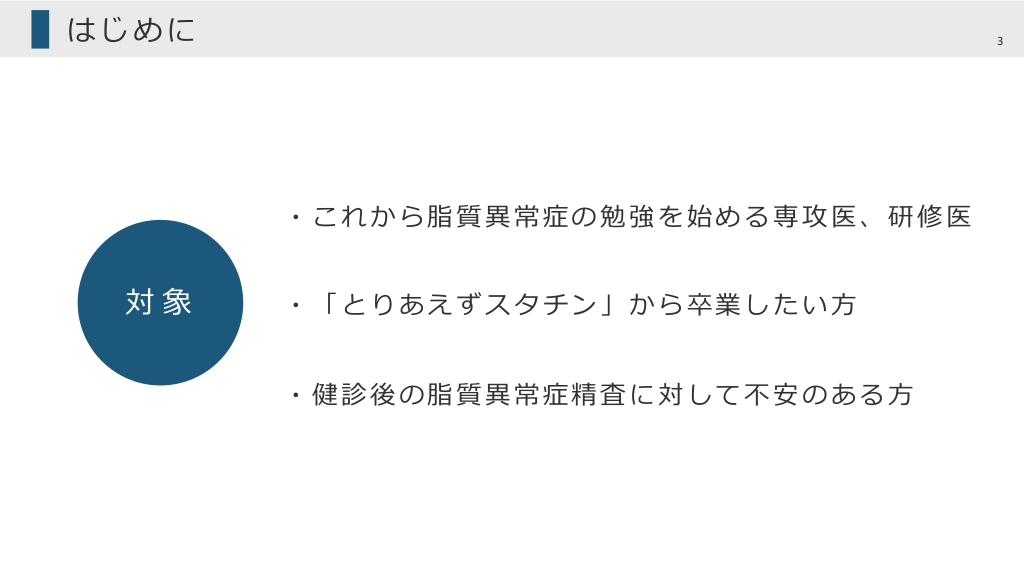 脂質異常症診療の入り口としてぜひこのスライドを活用ください。