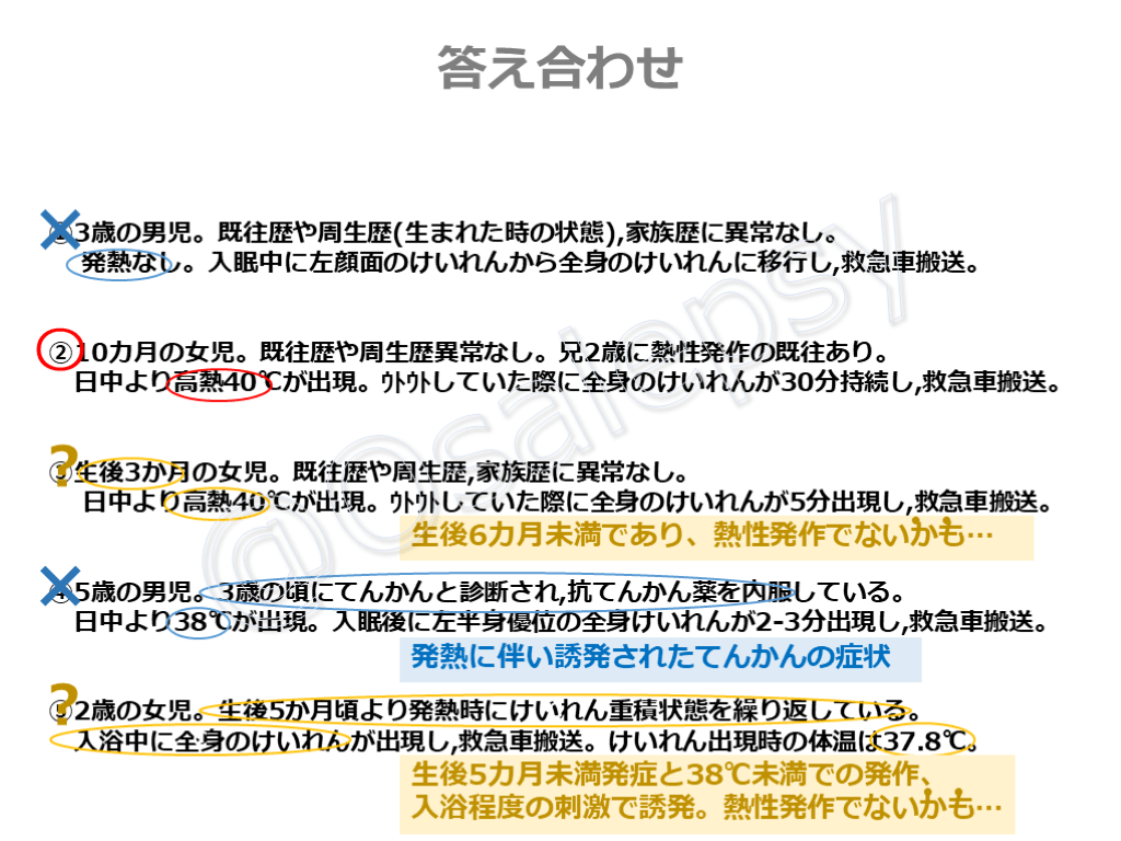 入浴程度の刺激で誘発。熱性発作でないかも… c @Osalepsy ● ● ● ● 答え合わせ #10.