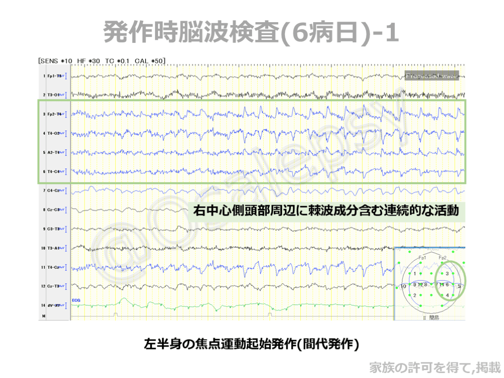 ※患者家族の同意を得て掲載 注意:本症例では家族の希望があり,光刺激賦活をルート確保・医師の監視下で