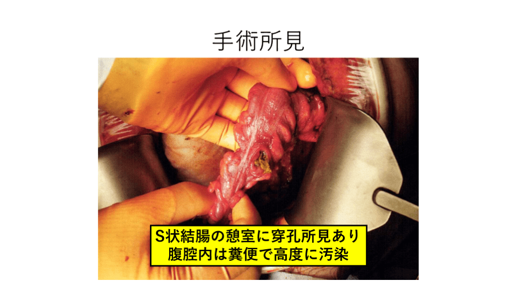 #11. 手術所見 S状結腸の憩室に穿孔所見あり