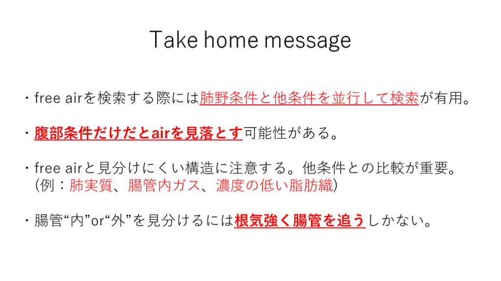 #13. Take home message ・free airを検索する際には肺野条件と他条件を並行して検索が有用。