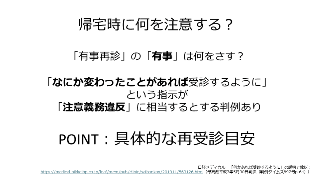 P 経過観察、有事再診 ほら!書いてないだろう! (有事って書いたし)症状悪化の場合は再診って… 有事ってそれだけでわかるわけ無いだろう!聞いてない!