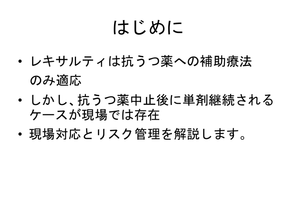 添付文書では“抗うつ薬の補助療法のみ”ってなってるけど、