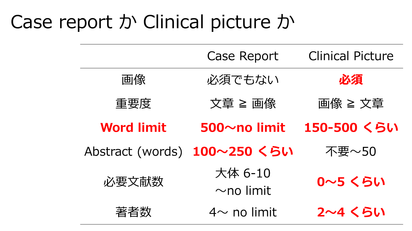 書こう! Case Report Clinical Picture or 新奇性は? 新たな症状、新たな治療、