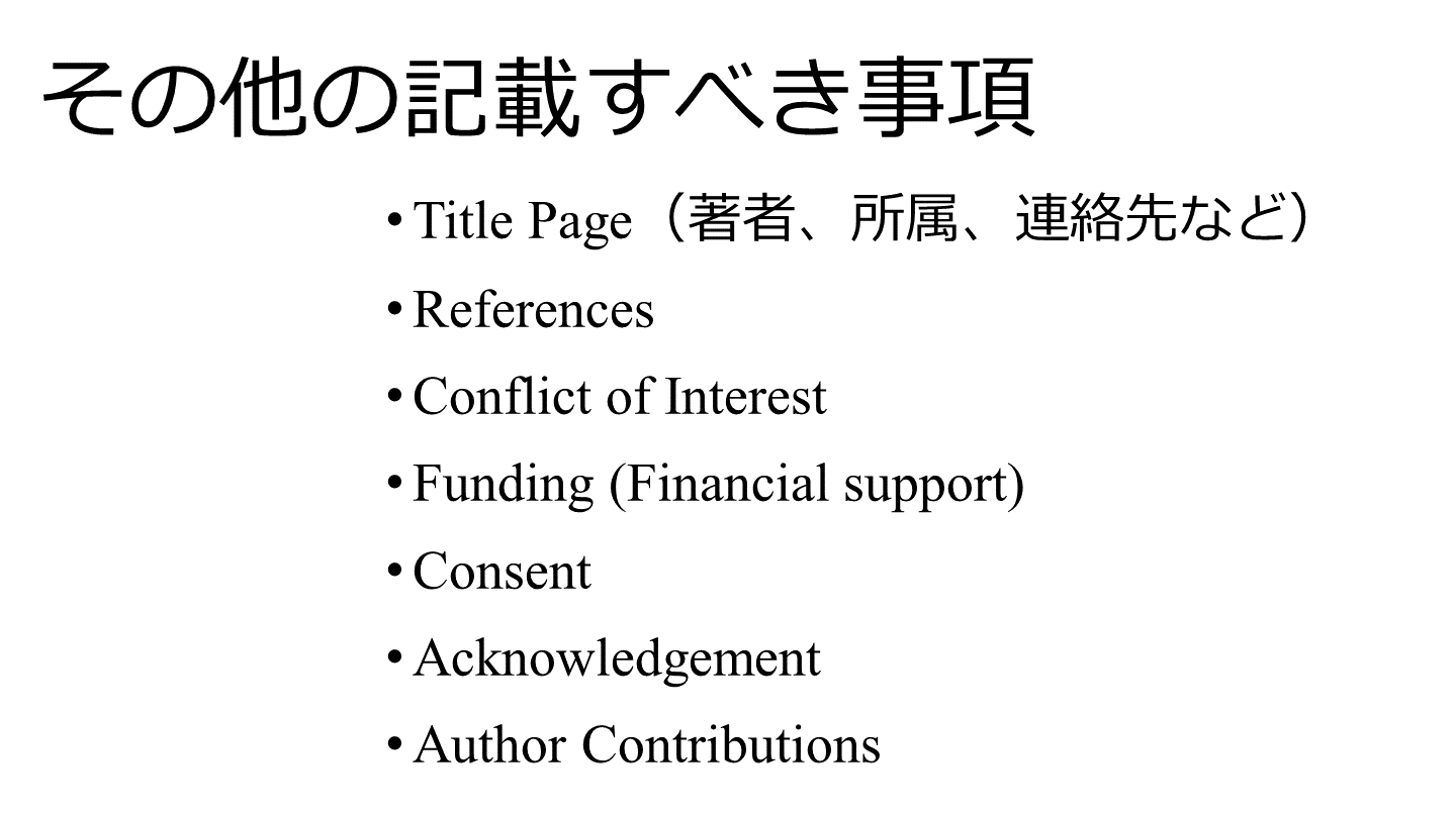 #39. その他の記載すべき事項 Title Page(著者、所属、連絡先など)