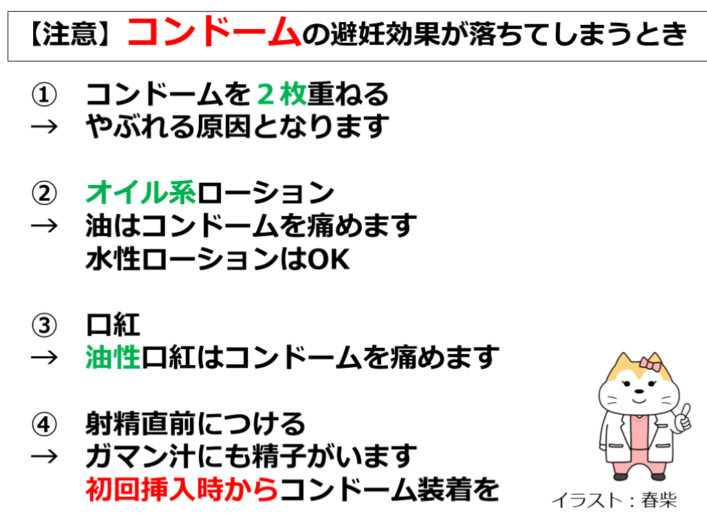 #13. イラスト:春柴 コンドームの避妊効果が落ちてしまうのは