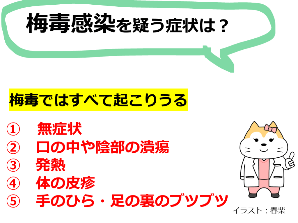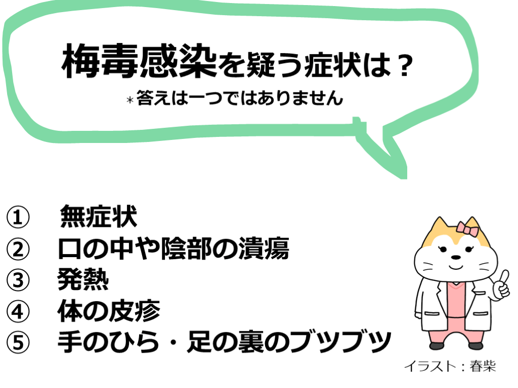 #20. イラスト:春柴 梅毒感染を疑う症状は? ① 無症状
