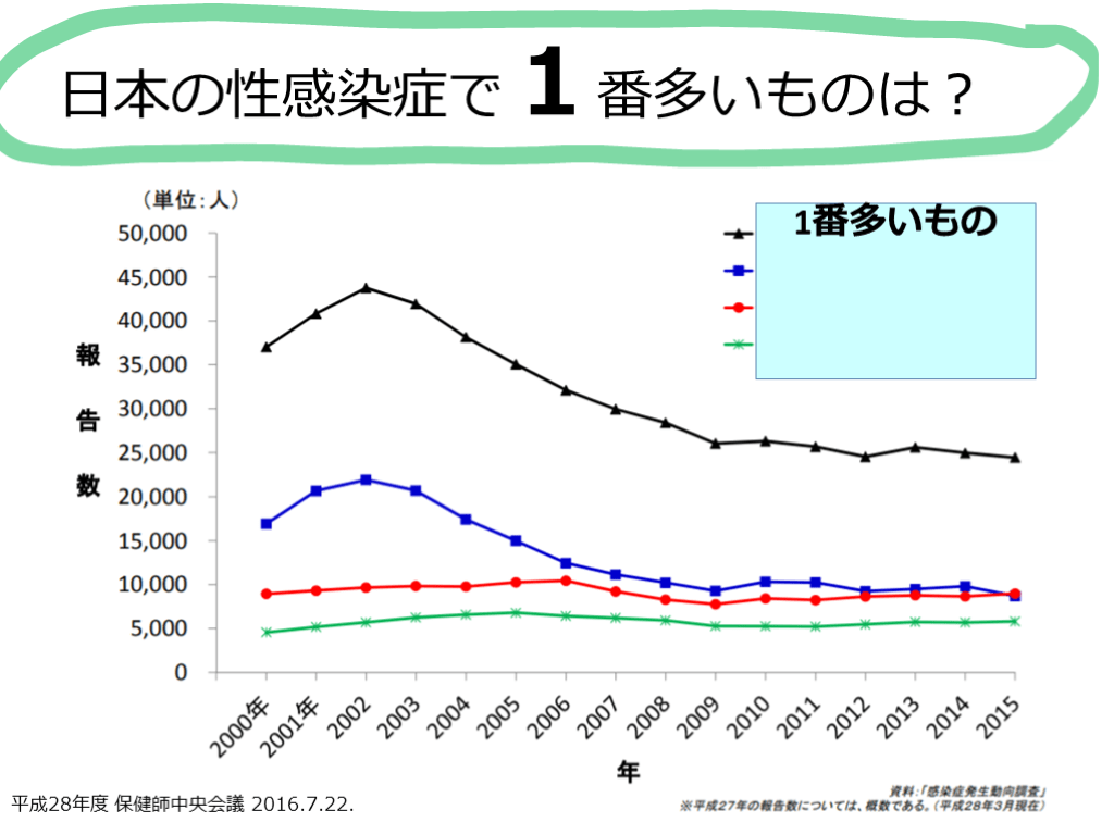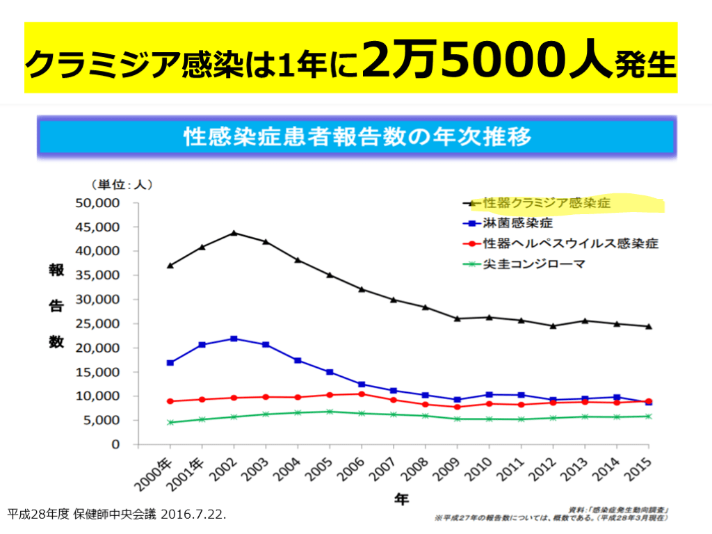 #25. 平成28年度 保健師中央会議 2016.7.22. クラミジア感染は1年に2万5000人発生
