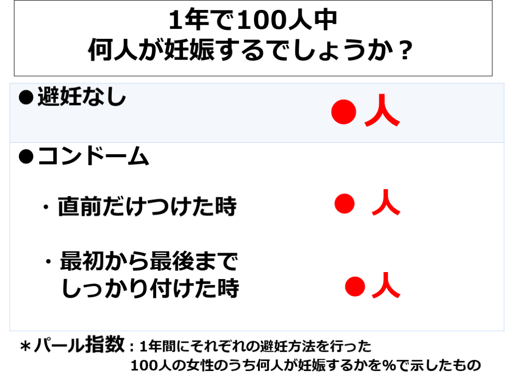 #44. 100人中 何人が妊娠するでしょうか? *パール指数:1年間にそれぞれの避妊方法を行った