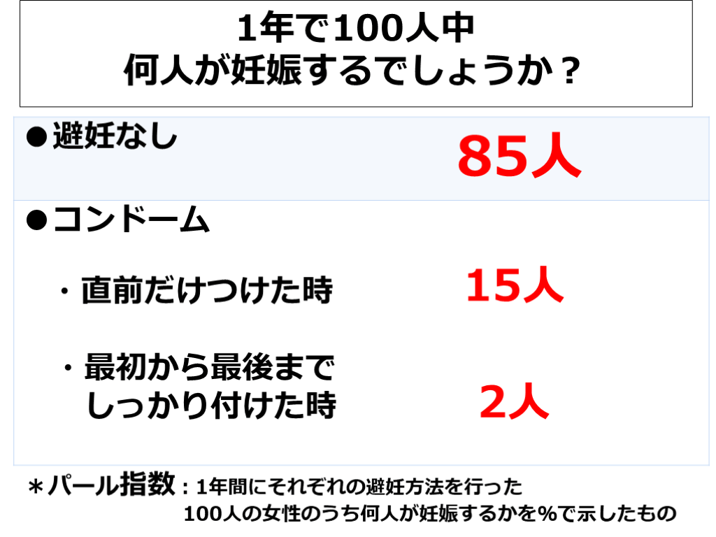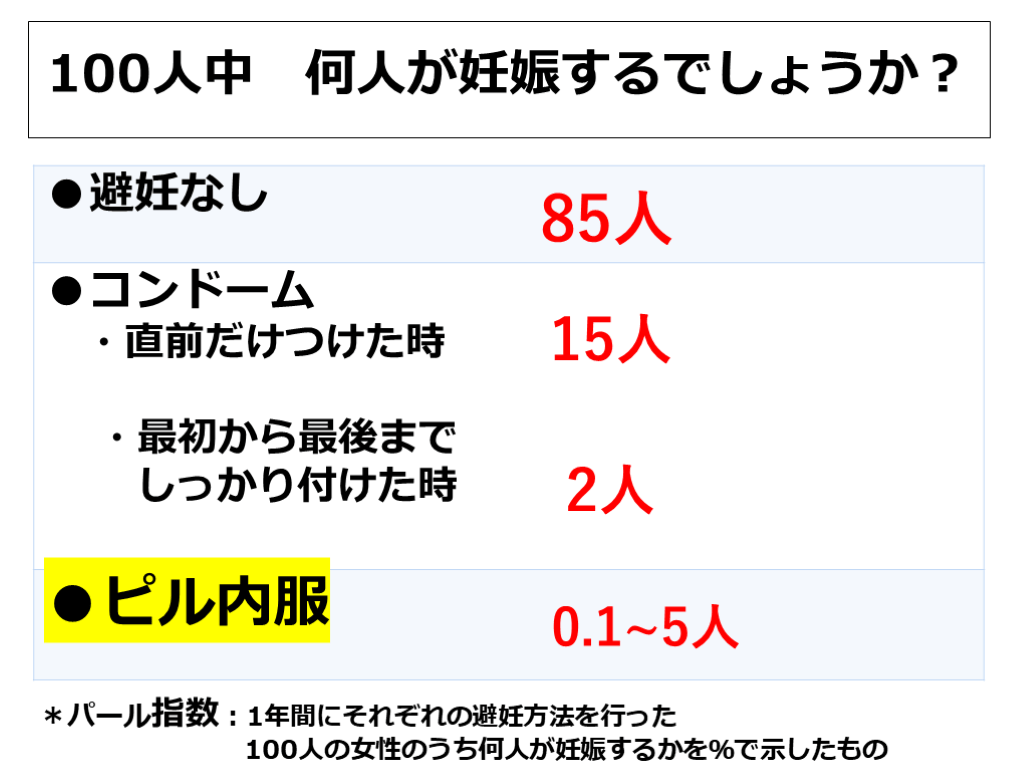 2人 *パール指数:1年間にそれぞれの避妊方法を行った
