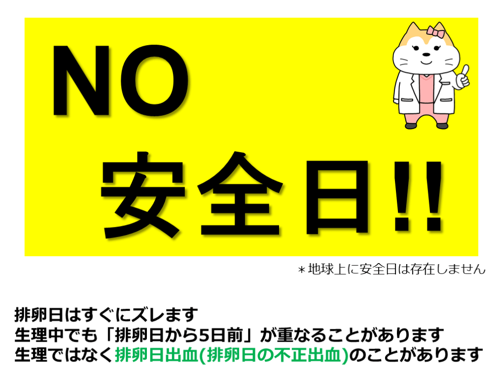 生理ではなく排卵日出血(排卵日の不正出血)のことがあります *地球上に安全日は存在しません