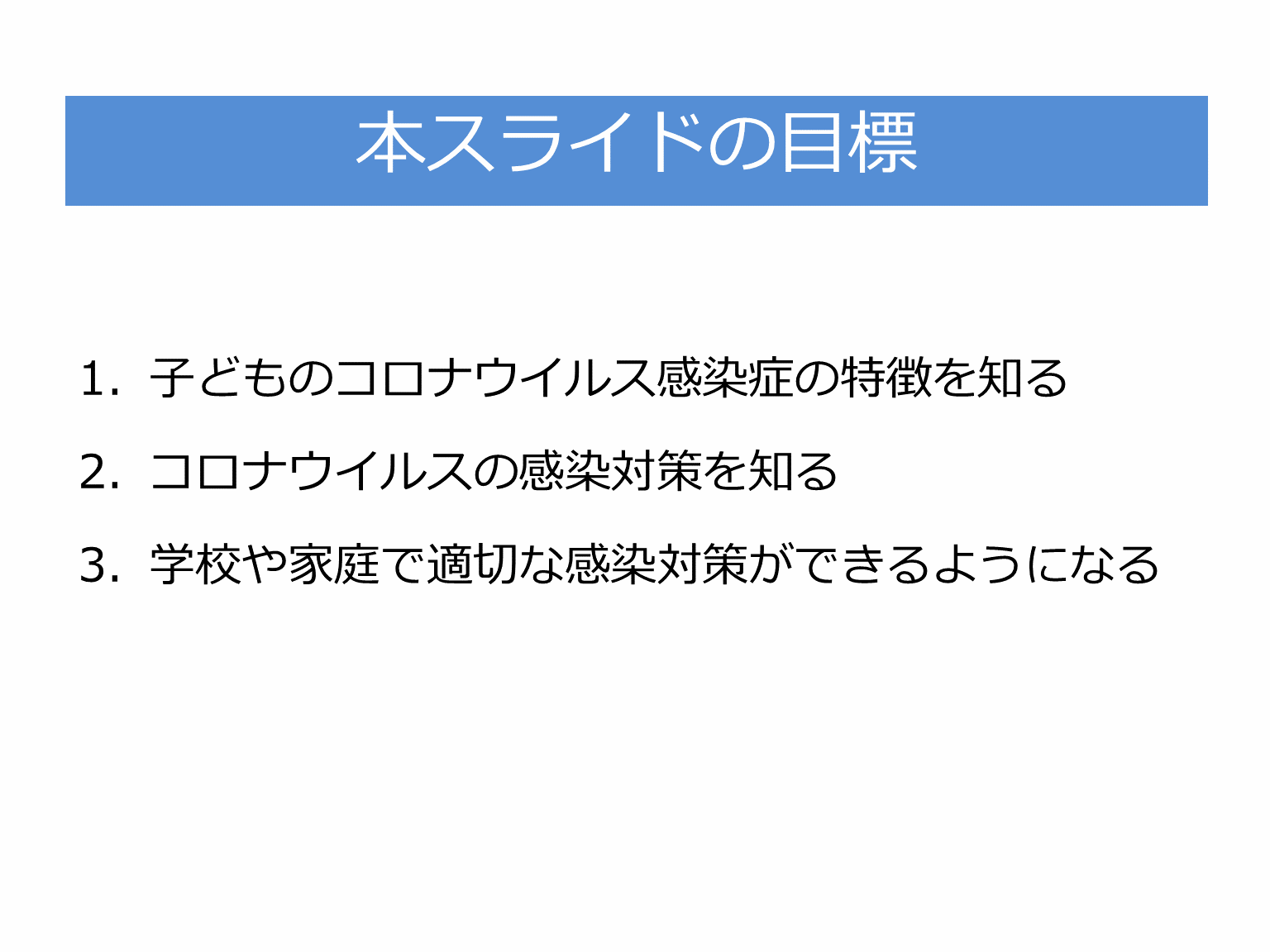 #2. 本スライドの目標 子どものコロナウイルス感染症の特徴を知る