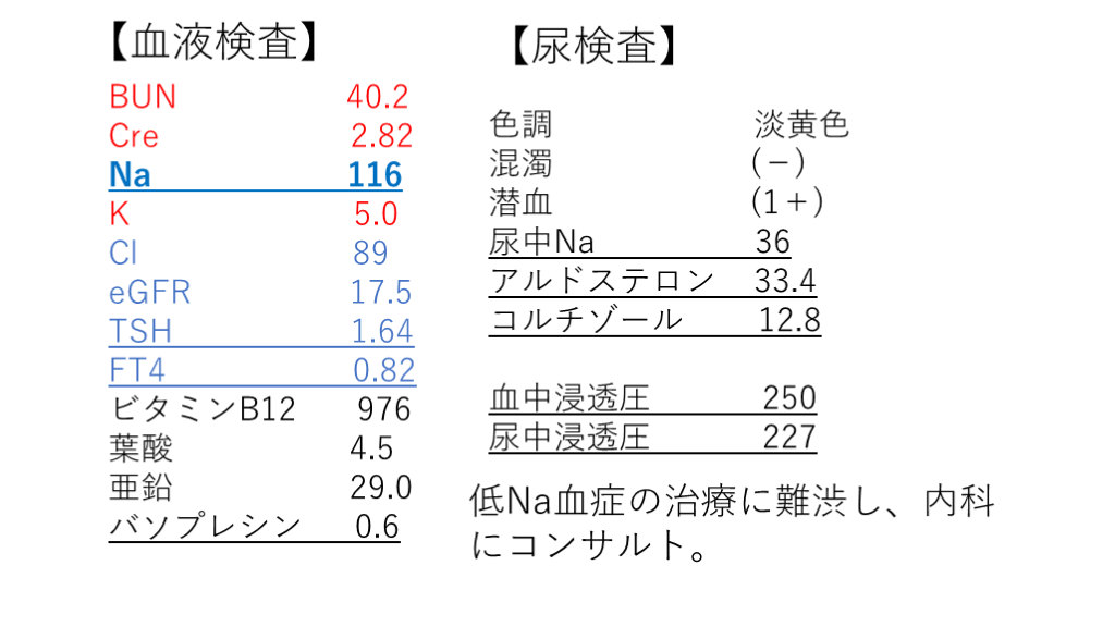 高齢者の低ナトリウム血症の症例紹介と検査結果