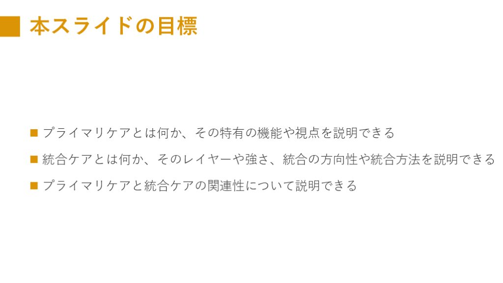 #2. 本スライドの目標 プライマリケアとは何か、その特有の機能や視点を説明できる