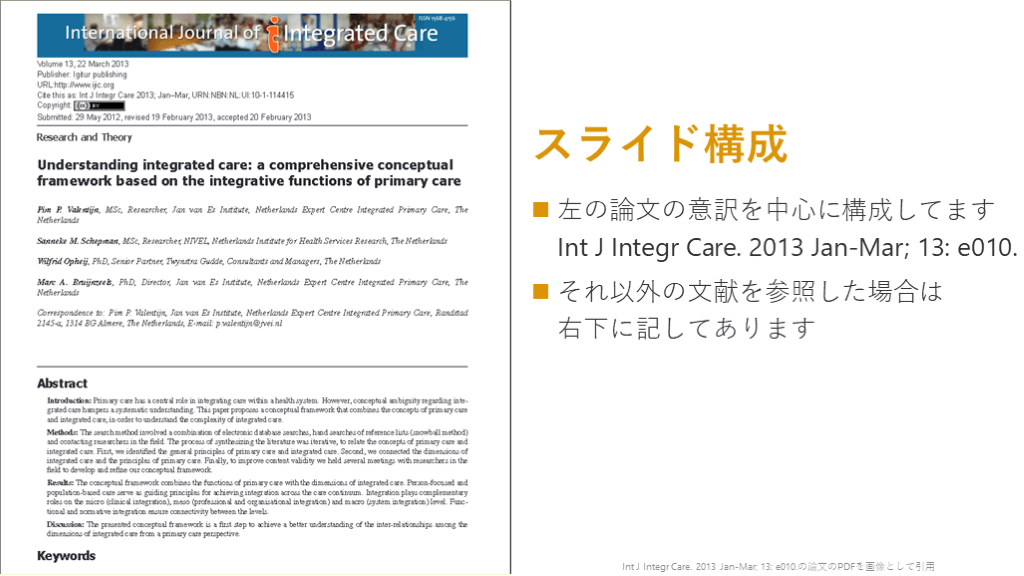 #4. Int J Integr Care. 2013 Jan-Mar; 13: e010.の論文のPDFを画像として引用 スライド構成 左の論文の意訳を中心に構成してますInt J Integr Care. 2013 Jan-Mar; 13: e010.