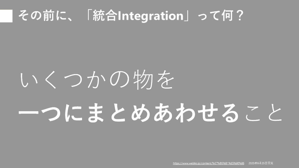 統合の強さには分離した状態から完全統合まで幅があるが、強い統合が常に理想的というわけではないので事例に応じて検討が必要。