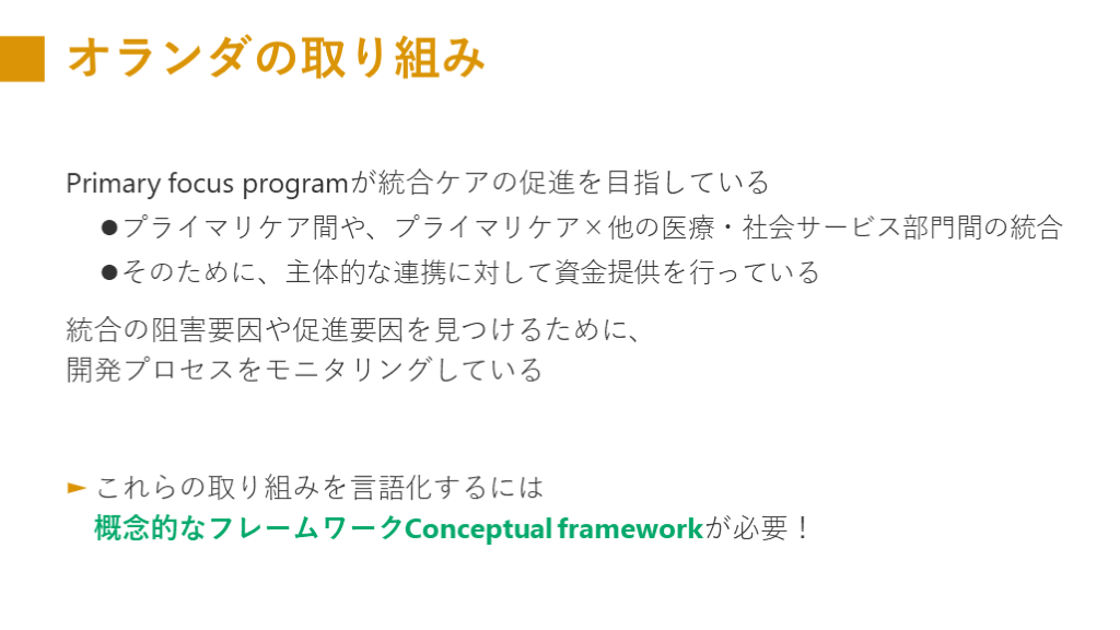 #15. オランダの取り組み Primary focus programが統合ケアの促進を目指している