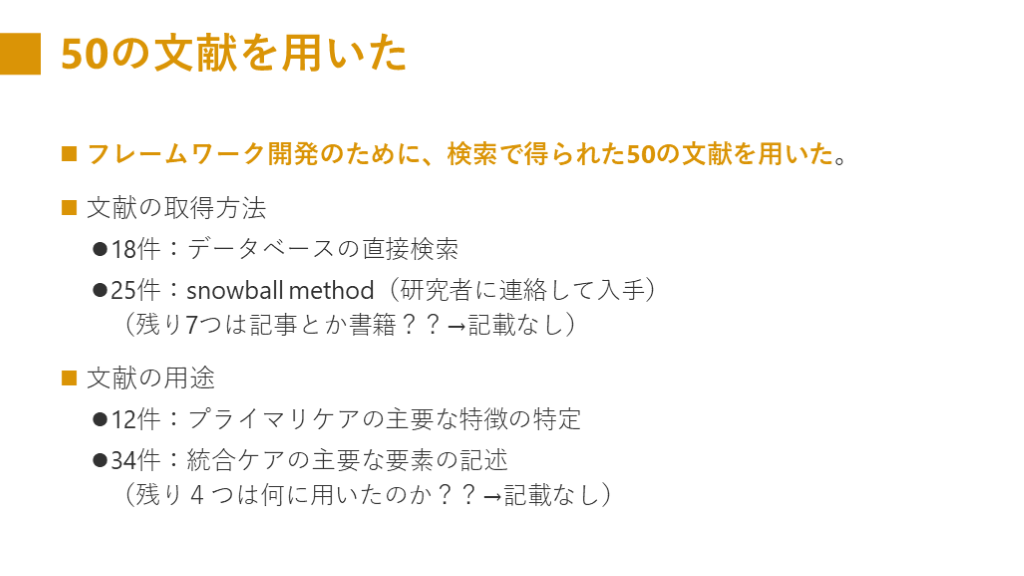#23. 50の文献を用いた フレームワーク開発のために、検索で得られた50の文献を用いた。