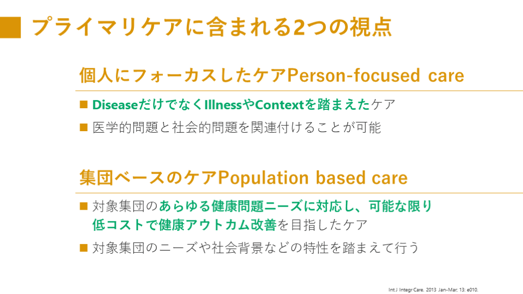 プライマリケアの視点:個人にフォーカスしたケア、集団ベースのケア