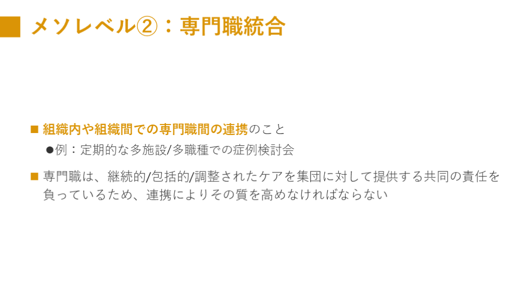 #41. メソレベル②:専門職統合 組織内や組織間での専門職間の連携のこと