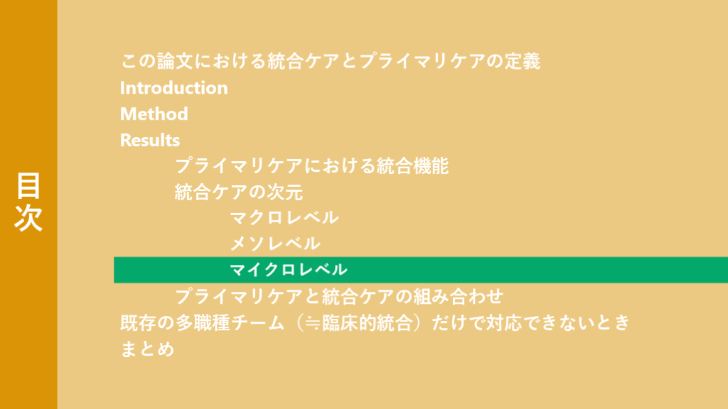 #44. マイクロレベル:臨床統合 臨床場面での専門職のケアの連携のこと