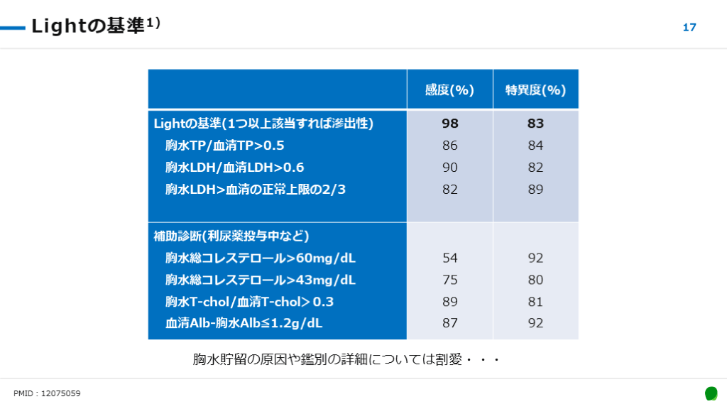 #17. 17 PMID:12075059 Lightの基準1) 胸水貯留の原因や鑑別の詳細については割愛・・・