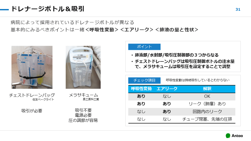 #31. 31 ドレナージボトル&吸引 病院によって採用されているドレナージボトルが異なる
